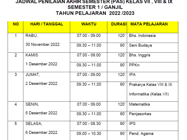 Informasi pembagian kelas Semester ganjil, Tahun Pelajaran 2022-2023 berikut ini daftar pembagian kelas SMP Negeri 3 Jakarta 1. kelas VII lihat disini 2. kelas VIII lihat disini 3. kelas IX..