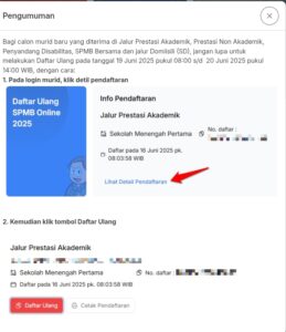 Adapun tahap daftar ulang daring adalah;